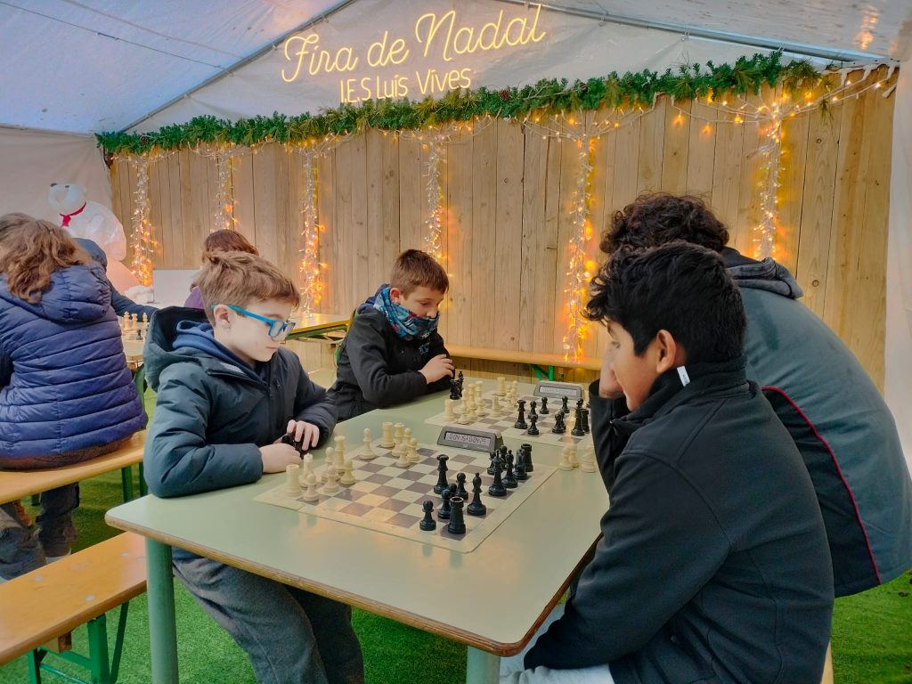 Un año más, varios alumnos de la escuela fueron invitados a participar en el torneo de ajedrez celebrado en el IES Luis Vives de València, una cita ya tradicional que se enmarca dentro de las actividades del mercado medieval que el centro organiza cada Navidad.